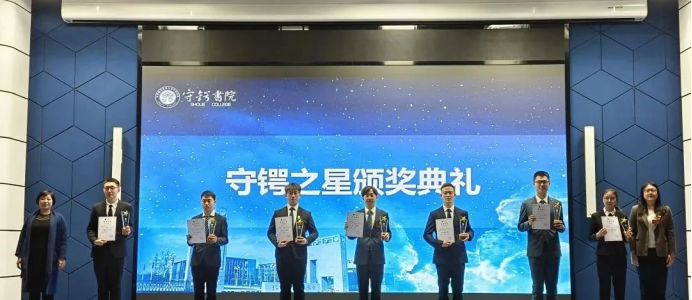 另外,本次大会对2021-2022学年守锷之星进行了颁奖。守锷之星杨沁哲接受执行院长李广玉老师颁奖,学海领航榜样林佳妮、于治平,科研领军榜样孙意阳,社会工作榜样杨晋豪,文体才艺榜样杨立达,励志成才榜样王赟,公益蓝天榜样赵歆宇上台接受团委书记王琳老师和学业助理纪奕欣老师颁奖,并合影留念。
