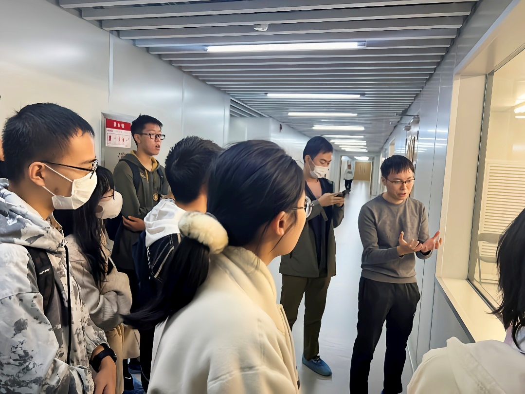 完成理论部分的学习之后,同学们分成几组,分别跟随负责的老师参观了智能微纳公共创新中心。透过洁净的玻璃橱窗,在老师们的娓娓讲述下,同学们相继参观了光学测试区、综合测试区、真空互联区、特色平台等科研区域,在实地参观中体会老师的讲解思路、感受现场氛围。在为志愿者们讲授的过程中,老师鼓励志愿者结合自己的理解努力把专业知识以通俗有趣的形式讲述给来访者。