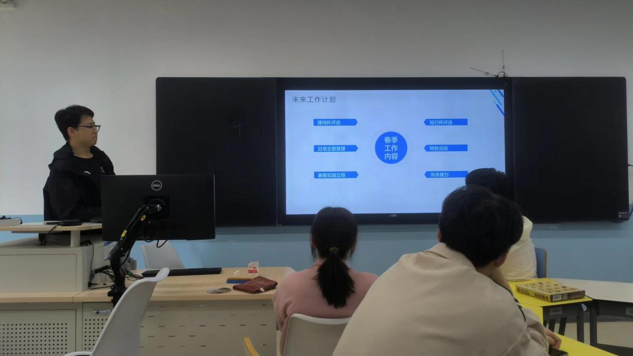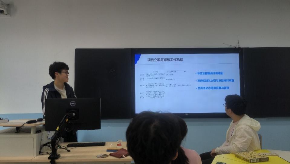 志愿实践部部长丁之珩向大家展示了每名干事的工作成果,高度评价了秋季学期工作的完成度和效率,并对新学期的工作提出了更高的要求。