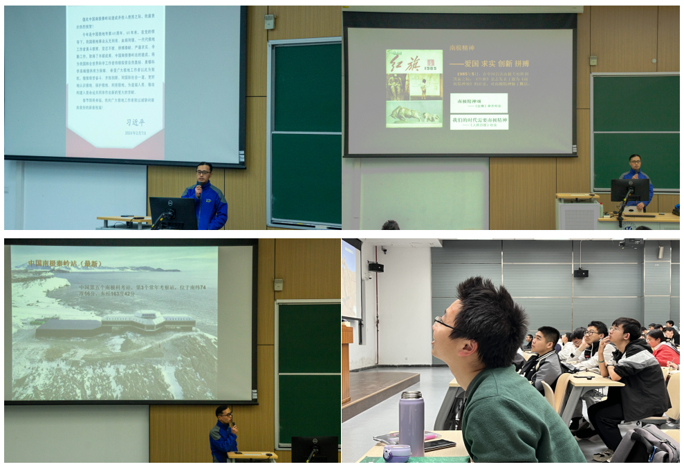 最后,徐老师结合亲身经历阐述了极地科考工作者在南极科考工作中体现的爱国、求实、创新、拼搏精神,并寄语同学们“路就在脚下,敬畏大自然,保持好奇心,勇敢走下去”。