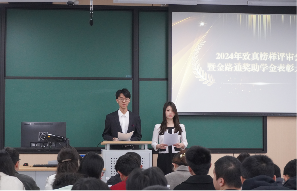 随后,大会现场对金路通奖学金与励志奖学金获得者进行了表彰。由致真书院执行院长闵敏为孙浩峰、印子一等4名同学颁发金路通奖学金,为成文杰、黄思诚等6名同学颁发金路通励志奖学金。