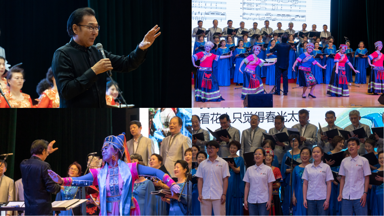 活动中,阎伯政教授以现场指挥合唱团演唱并讲解作品的方式,诠释了中国民族歌曲的演变与特色。合唱团演唱了以《长街宴》《阿妹等你来》《酒歌》为代表的多首经典传统民歌,浓烈而磅礴的情感表达与恢弘大气的钢琴伴奏相配合,让现场观众真切地感受到民歌的韵味与多彩。阎教授还分享了每首民歌背后的文化故事、音乐知识及自己的美育观念,使观众在享受音乐的同时,也对歌中之情、词中之意、曲中之美有了更深层次的理解。