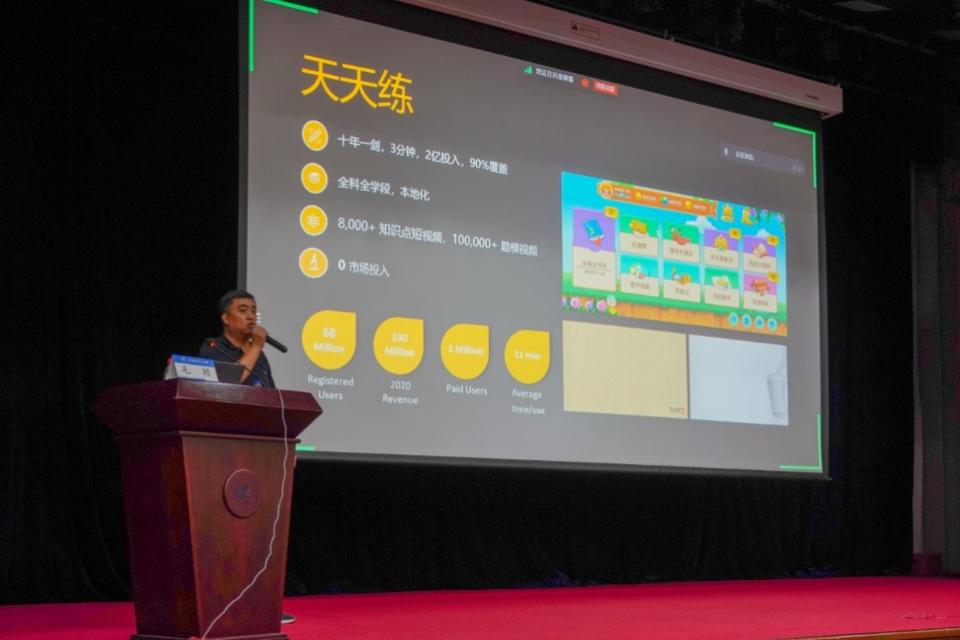 毛先生首先和同学们分析了当前互联网企业成功的原因,之后引出了中国教育的变化过程和城镇化程度。在此基础上毛先生讲述了他将教育行业与互联网行业特点相结合,创立乐乐课堂的原因。