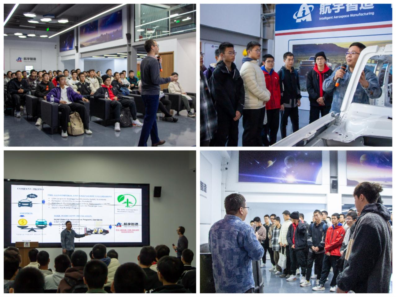 的学习生活经历,回答了同学们在企业招聘等方面的问题。张猛博士提到,之所以选择自主创业,主要原因之一是导师的教诲对他的影响非常大,而在导师的影响下,他也坚定了志向,要将热气胀成形等技术不断发展,做大做强。同时,张猛博士也对同学们提出了期望,希望同学们加强专业知识的学习,重视基础,最终成长为国家需要的高素质人才。最后,校友们表示欢迎同学们来到航宇智造实习,在实践中检验和提高能力。