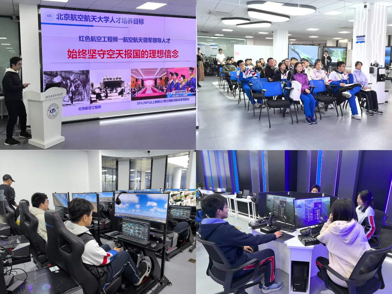 在新一代全数字化飞行器科教协同创新中心的场馆内,志愿者代表李祖晟以生动的语言介绍了科教协同创新中心的建立初衷及其未来方向。他以数字化飞行器设计为主线,从学科交叉到技术突破,从研发流程到实际应用,描绘了一幅现代航空科技的蓝图,让在场的同学深刻感受到创新与融合的重要性。同学们在志愿者的耐心指导下,尝试操作飞行模拟器,体验了如临其境的飞行任务。每一次起飞与着陆,每一个细微调整,都让他们感受到科技与细节的紧密结合。在体系对抗区,模拟直升机协同作战的场景更让他们切身感悟现代战争中的团队协作与技术优势。理论知识在实践中鲜活,科技梦想在体验中燃烧。