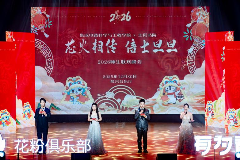 与士谔书院“芯火相传 信士旦旦”2026年元旦师生联欢晚会暨“璀璨之芯”“士谔志士”颁奖典礼在晨兴音乐厅举行。整场活动集表彰先进与文艺盛宴于一体,既彰显了两院学子的卓越风采,也凝聚了师生同心的深厚情谊,为即将到来的 2026 年奏响了昂扬序曲。