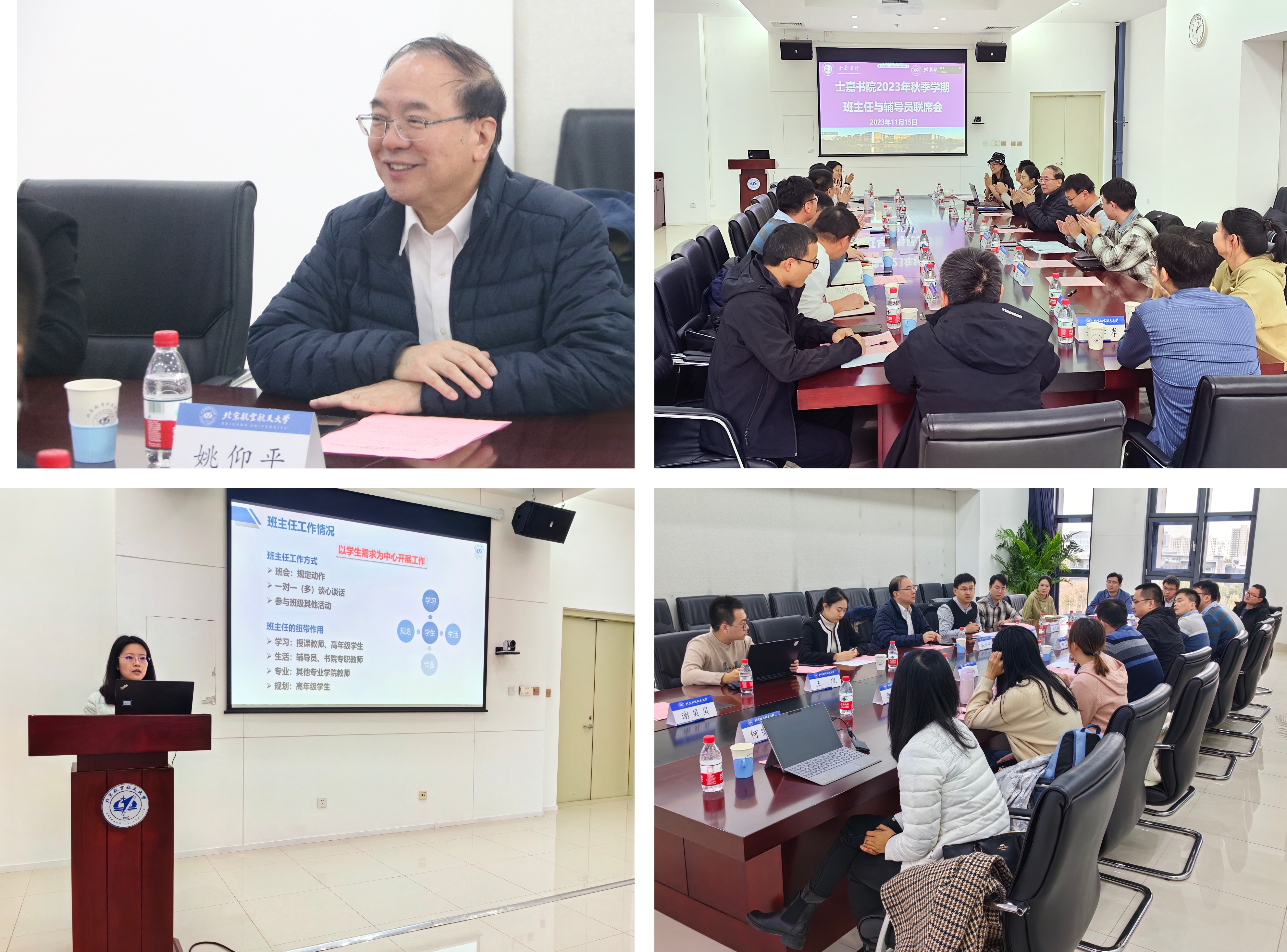 (通讯员 谢贝贝)为进一步加强班主任和辅导员之间的工作协同,汇聚育人合力,11月15日下午,士嘉书院在沙河校区主楼A413会议室召开2023年秋季学期班主任与辅导员联席会。士嘉书院院长姚仰平、执行院长吕经纬、2022级优秀班主任代表何雯婷、2023级班主任和专兼职辅导员、学业助理等参会。会议由吕经纬主持。
