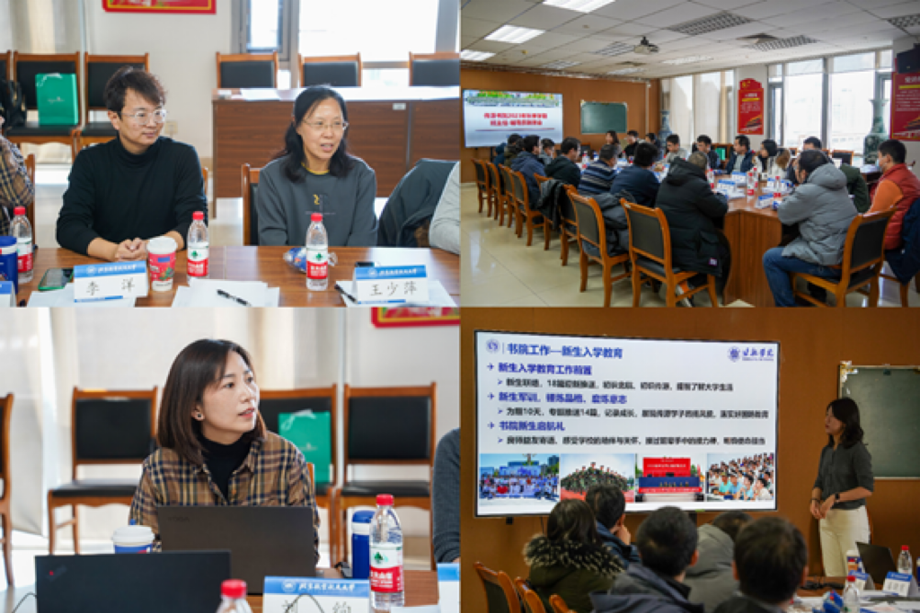 传源书院专职辅导员姜骁宵做书院工作汇报,从思政党建、学业支持、文体活动、梦拓活动等多角度向班主任介绍传源书院特色育人体系,分享书院精彩生活,展示书院学生风采。传源书院学业助理刘绚老师做班级建设工作汇报,总结秋季学期传源书院开展的特色“我和班主任的9次约会活动”体系,对班主任在思想引领、学业支持、实践活动等多方面工作。同时,她结合书院期中考试的成绩分析,总结学生在学习过程中的重点问题,为即将到来的期末阶段工作指明具体开展思路,共同解决学生学业困难。