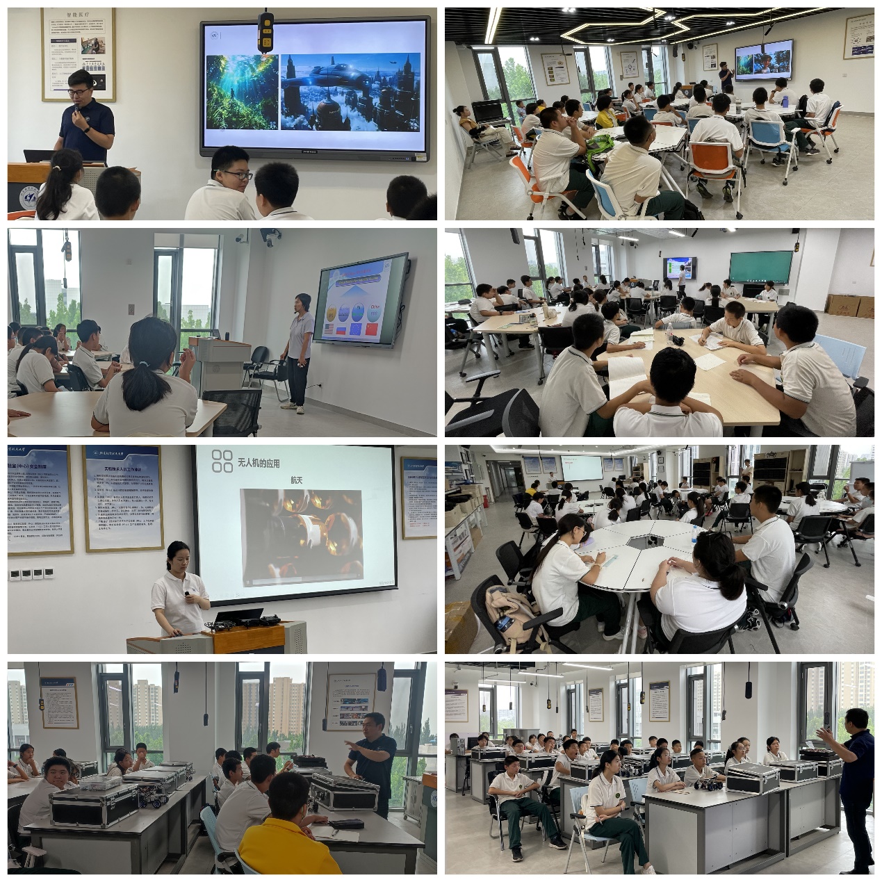 本次活动亮点纷呈,工程训练中心精心策划,开放了北斗、无人机、机器人和人工智能四大创新实验室,紧密围绕当前科技热点与前沿领域,为学生们量身打造了四场精彩绝伦的科普盛宴。从《中国的北斗、世界的北斗》中领略卫星导航的无限魅力,到《你好!无人机》中感受无人技术的飞跃发展;从《大话空间机器人》中探索太空探索的奥秘,再到《无处不在的人工智能》中洞察智能科技的广泛应用,每一场讲座都深入浅出,让学生们对相关知识有了更为直观和深入的理解,激发了他们探索未知、追求科学的热情。