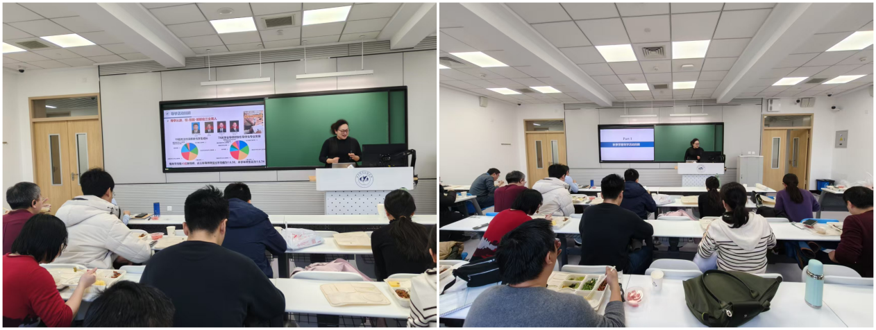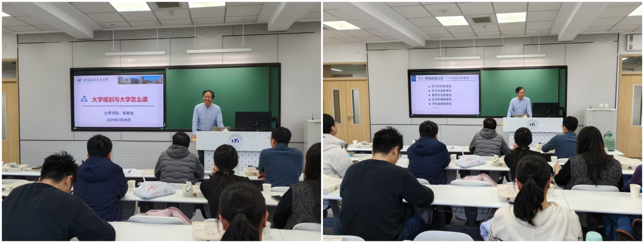 接下来,士谔书院学业总导师张有光作《大学规划与大学怎么读》主题报告,他基于大一新生特点进行学情简要分析,提出作为导师要耐心倾听、敏锐感知,面对学生情绪的不稳定性、发展目标的模糊性等要体现包容。张老师还强调,随着人工智能技术的飞速发展,如何引导信息大类的学生正确对待并使用相关技术也是导师们需要面对的问题。最后,他结合秋季导学读书会与春季大学规划的整体安排,从理论学习与实验实践多角度,以自身为例分享了导学活动的经验。参与老师表示受益匪浅、深受启发。