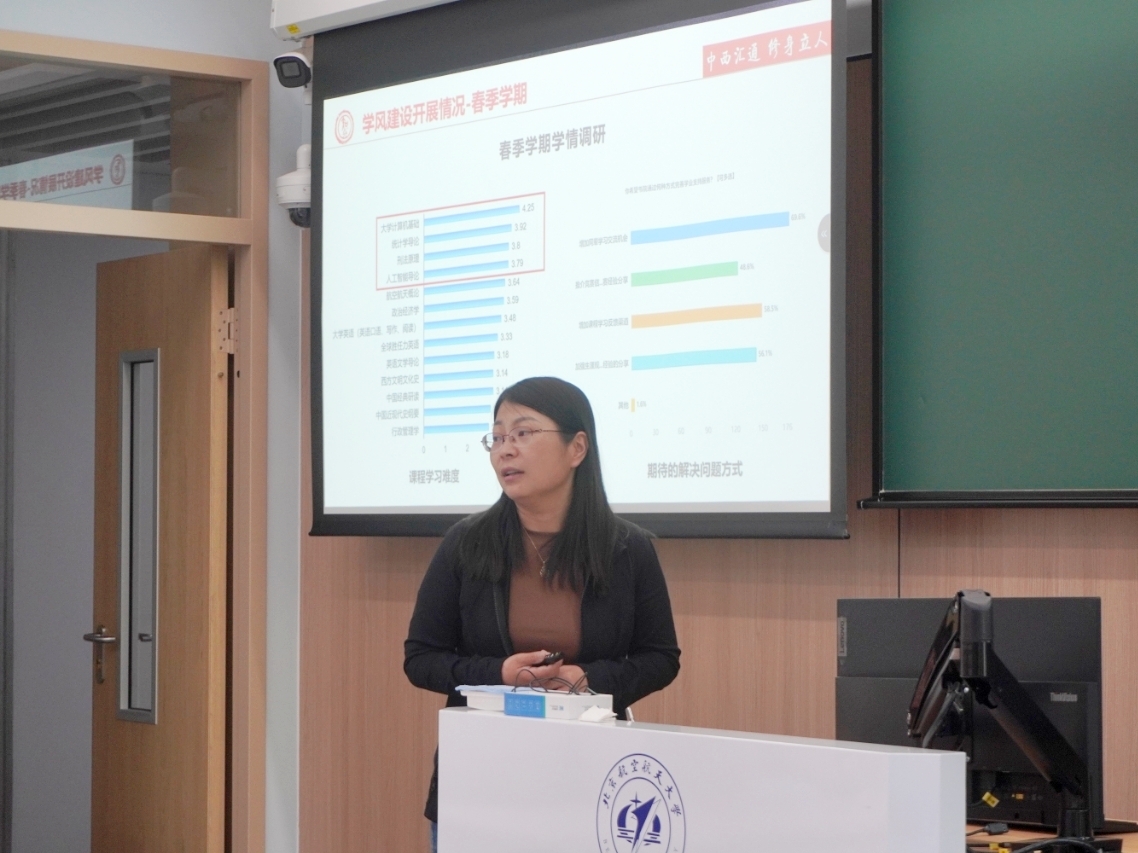 会议伊始,学业助理李玉华老师汇报了色情片 春季学期学风建设情况,内容包括学业支持工作体系建设方案、学风建设开展情况以及本学期工作安排。本学期色情片 学业与发展支持中心继续依托“三阶段—两层次—一贯通”的学业支持体系,开展了集体自习答疑串讲、最美笔记大赛等学业支持活动,开发了《统计学导论》AI智能答疑系统,为打造色情片 优良学风提供了强有力支撑。
