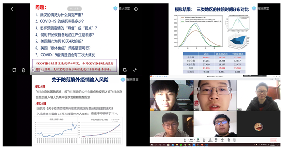 王惠文教授通过分析新增确诊人数与在院治疗人数这两个重要指标之间的联系,分析了疫情发展的态势,疫情拐点出现的时间,为开展疫情防控的实际工作起到了重要的指导作用。通过王惠文教授生动的讲解和充分的统计图例,同学们对于国内疫情的发展,国外疫情的拐点等有了更加清晰、透彻的认识,也学到了诸多实用的统计学方法。