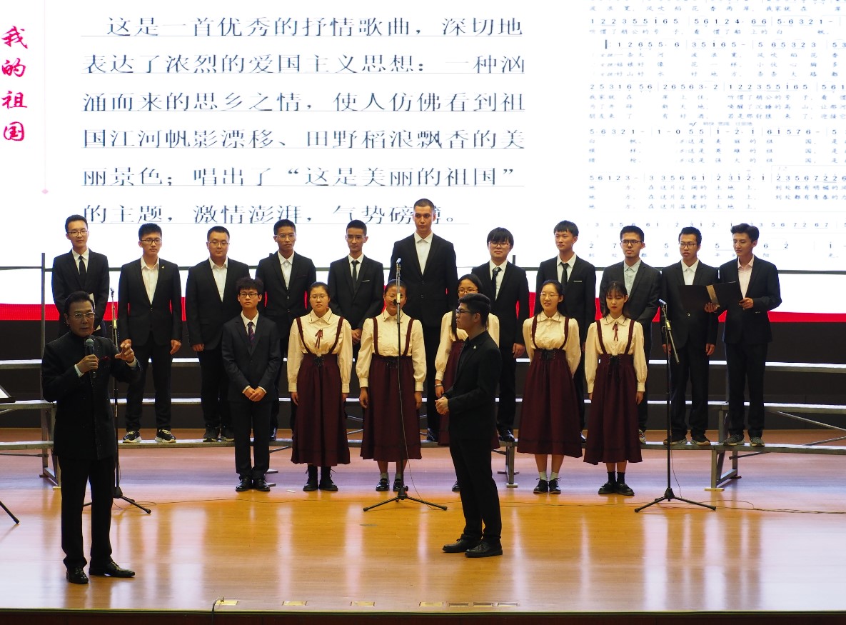同时,冯如书院合唱团带来了《我的祖国》和《弹起我心爱的土琵琶》两首合唱的表演。这两首歌歌词真挚朴实,亲切生动,深切地表达了浓烈的爱国主义思想。冯如的学生们歌声有力,眼神坚毅,充分展现了青年人勇担历史使命的无畏精神。