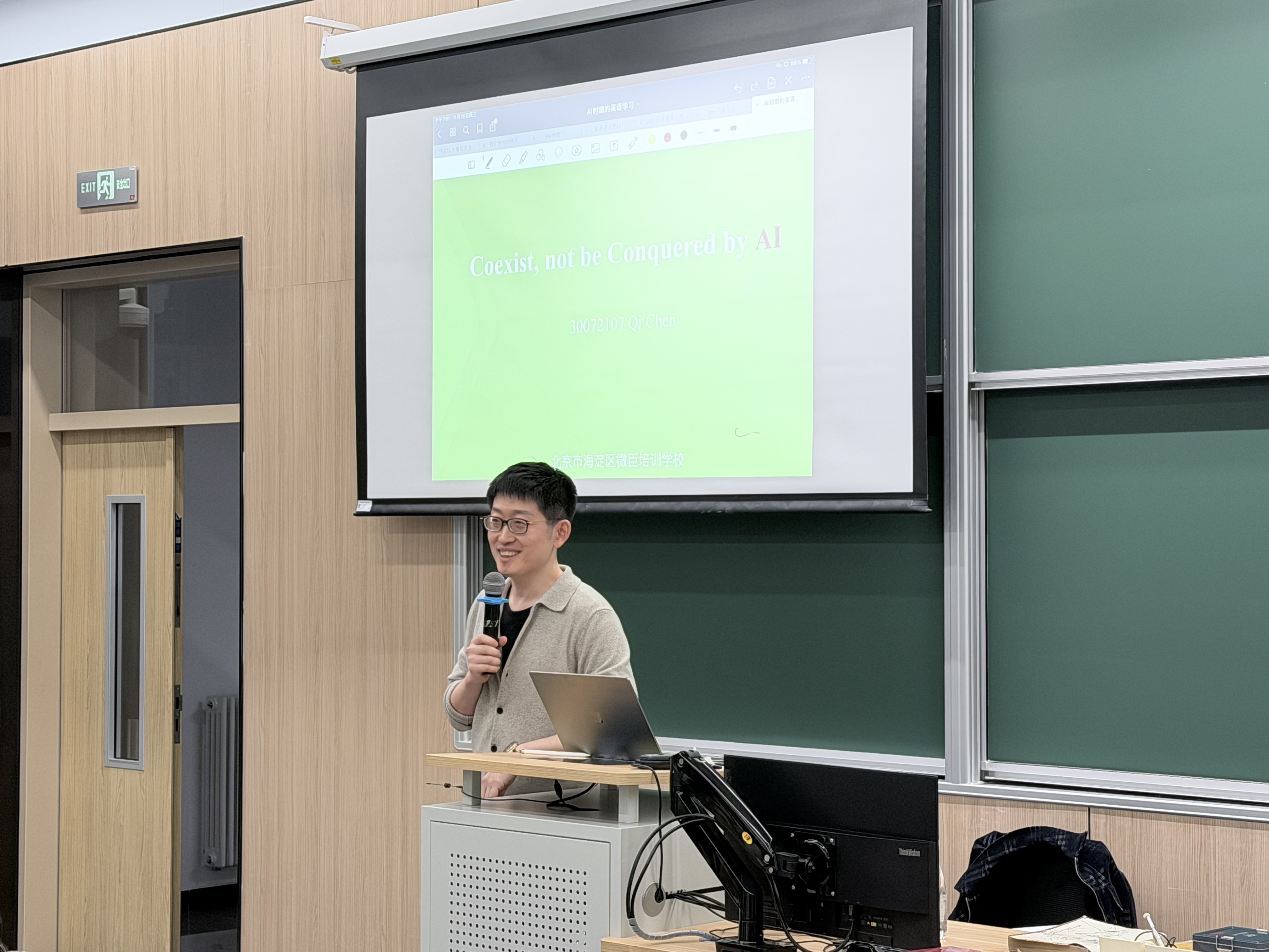 路校区主楼219教室主讲《AI时代,建构英语学习新思维》博雅专题讲座。全校220余名师生现场参会。