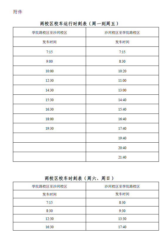 为了方便全院师生的出行,现将沙河校区管委会办公室《关于调整两校区校车运行时刻的通知》转发给你们。